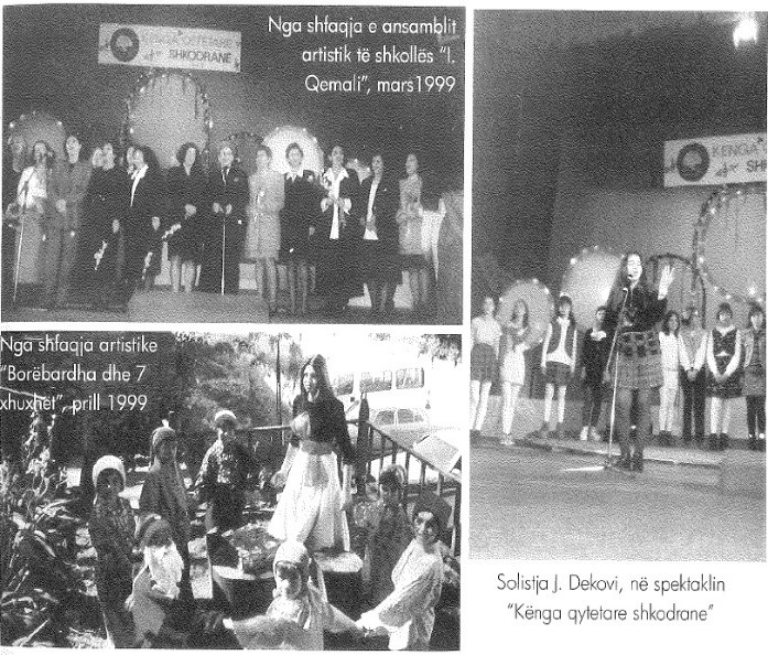 Në mars të vitit 1999, ansambli artistik i shkollës 8-vjeçare 'Ismail Qemali' dha një program rreth dy orësh, me këngë popullore dhe valle shkodrane.